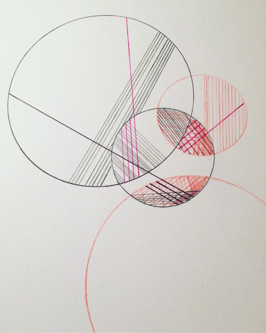 #circles #curves #lines #straightline #geometric #geometricdesign #contain #contained #emotions #inside #layers #overlapped #overlapping #design #art #biro #black #pink #grey #calm #lighter #colour #mechanicalpencil #colouredpencil #artist #sketchbook #drawing #doodle
